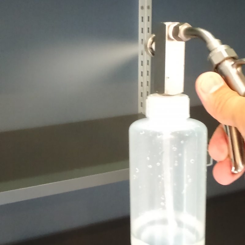 無光触媒コーティングは専用エアガンを用いて、施工面に噴霧し乾燥を経て、無光触媒コーティングの粒子が積層し強固な多孔体組織が形成されますので、コーティング施工面と室内の空気の触媒効果によって、生活空間に生存する様々な菌が施工面に接触することで、菌の増殖を阻止し、菌が減少する効果が得られます。
